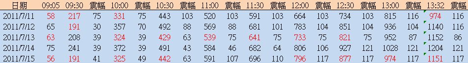 在每一個時間點,都把目前的成交量與震幅做個紀錄