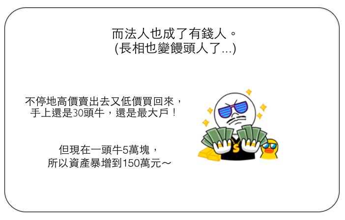 而法人賣了很多頭牛,變成有錢人
