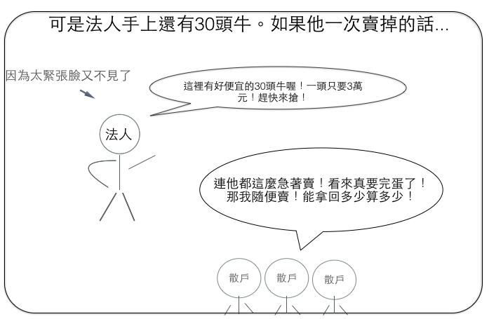 可法人手還有 30 頭牛,如果一次賣掉的話,散戶就知道了