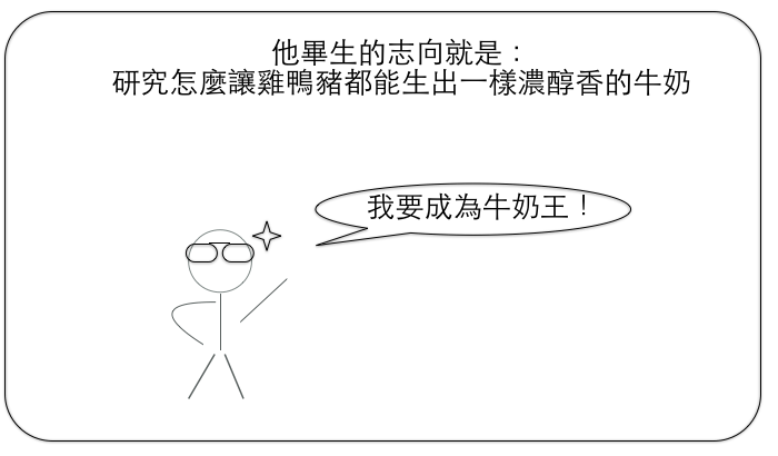 他的志向就是讓雞鴨豬可以生出一樣濃醇香的牛奶