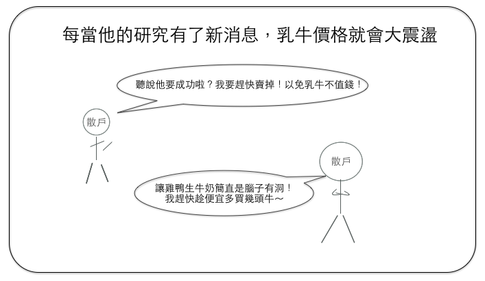 每當他的研究有消息,乳牛價格就會大震盪